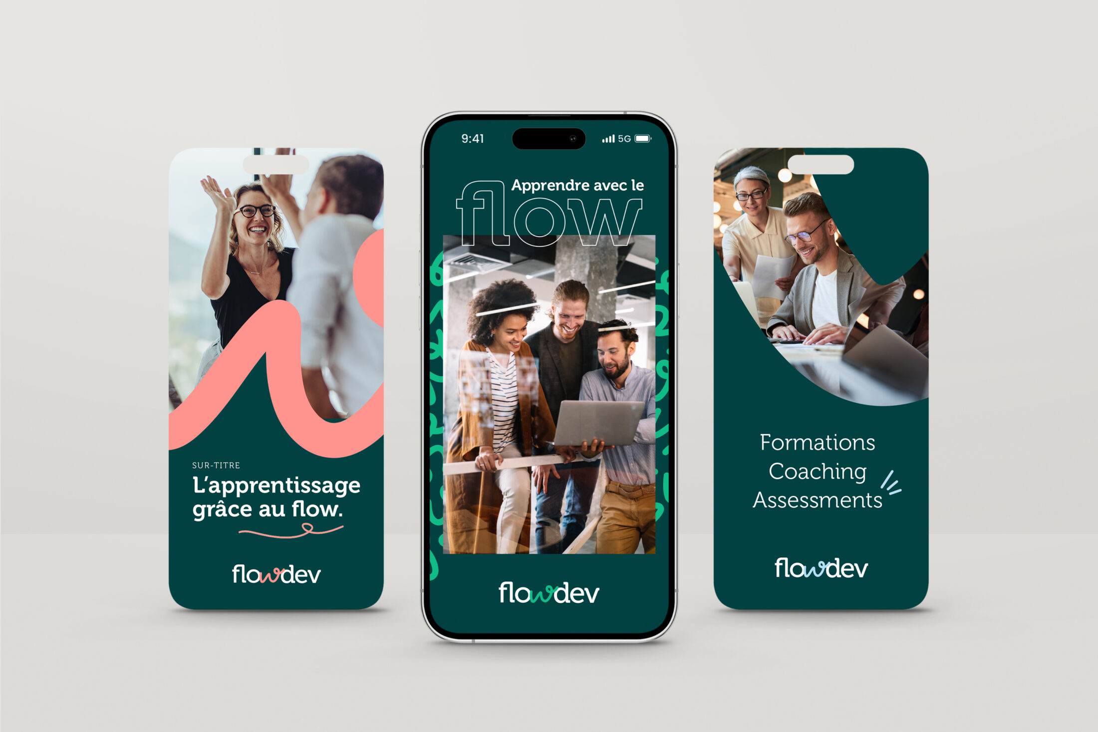 FlowDev, une jeune entreprise visionnaire centrée sur l’optimisation de l’apprentissage à travers l’état de Flow et de l’épanouissement des talents, a pris contact avec le Studio Chaperché pour traduire son identité visuelle et sa charte graphique.
